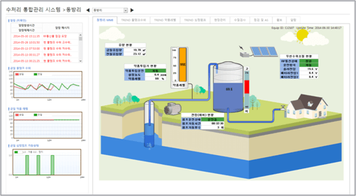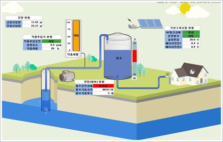 上水処理施設が本来の運営目的によって現場別の稼働状態、危険警報発生に対するモニタリングを確認制御できる遠隔制御システムです。